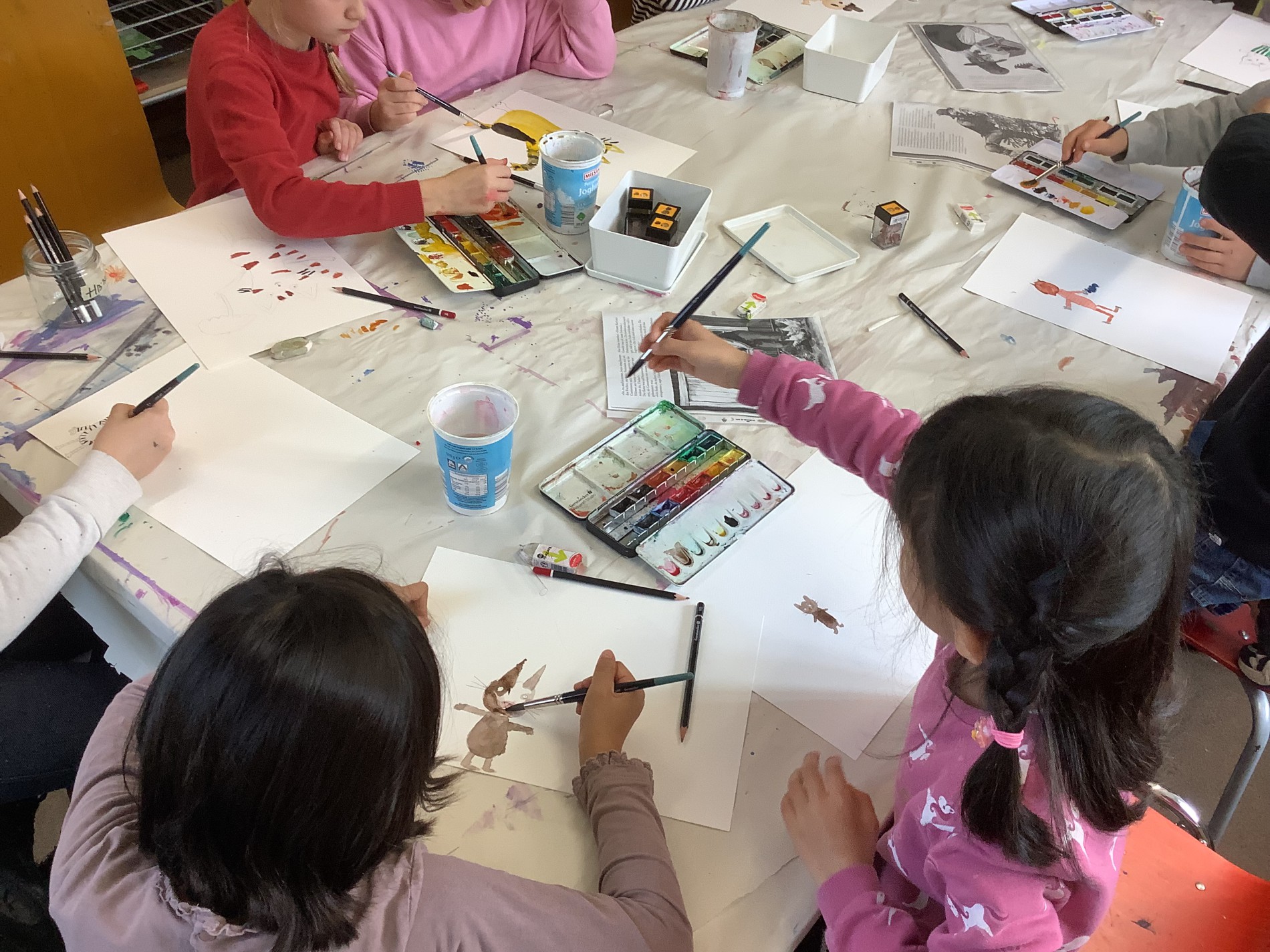 Was macht unseren Kunstunterricht so gut wie er ist? Neben dem Kennenlernen neuer Techniken und neuer Materialien wird der Vielfältigkeit einen großen Stellenwert zugeschrieben. Platz für Individualität und Kreativität, für das Erforschen neuer Techniken und das Leben einer wertschätzenden Feedbackkultur. Kunstunterricht hat keinen strukturierten Fahrplan, wie das Rechnen von Malaufgaben oder das Schreibenlernen von Buchstaben. Hier gilt, sich ausprobieren zu dürfen. Sicherlich ist es hilfreich, alte und auch moderne Künstler zu betrachten, deren Werke zu verstehen, ihre Ausdrucksweise und ihre Maltechnik. Gerne probieren wir diese aus, ahmen nach, verfolgen eigene Interpretationen und erweitern so die Fähigkeiten.